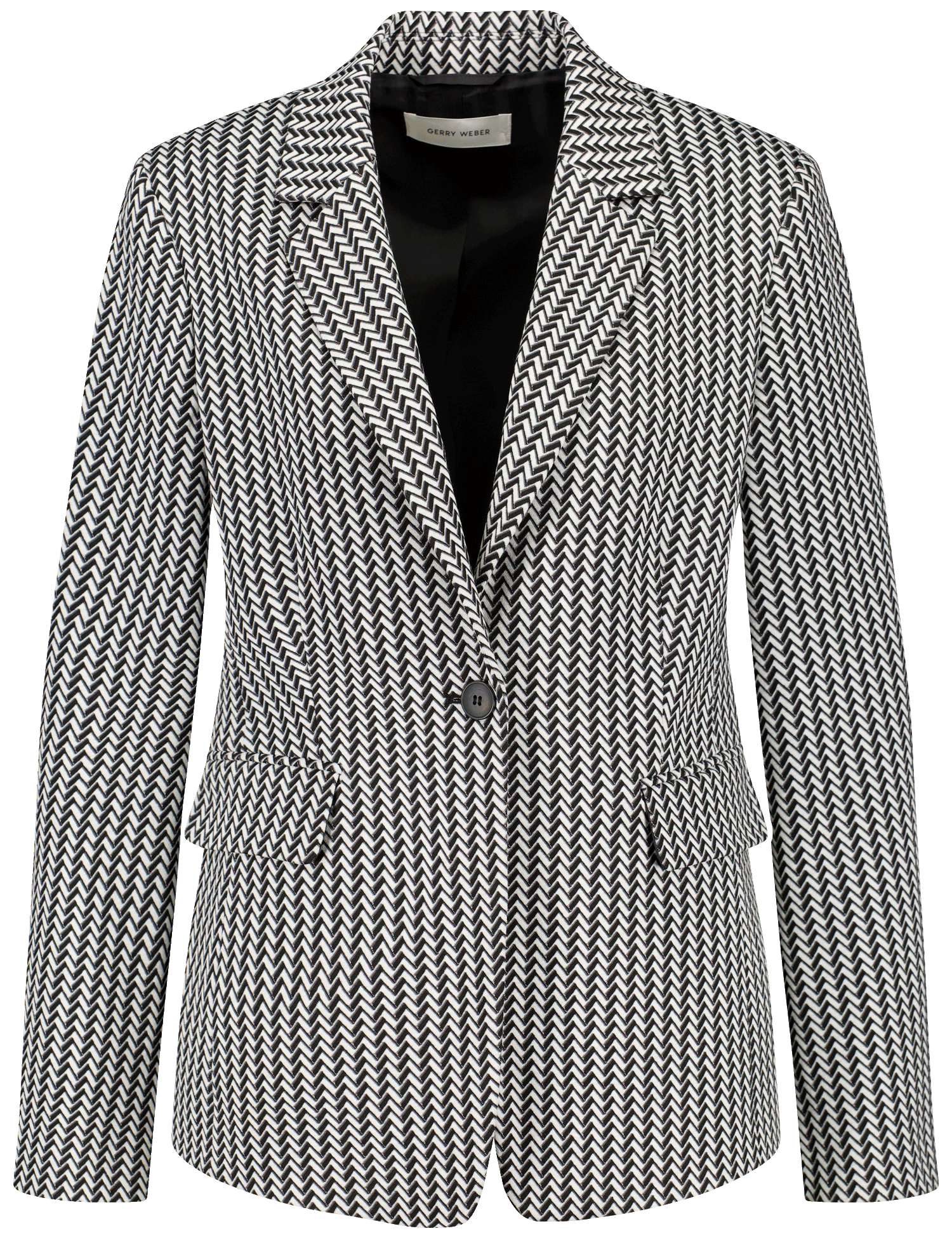 Dieser Blazer bringt Bewegung in jeden Look – das ausdrucksstarke Zickzackmuster verleiht ihm eine moderne Note, während der klassische Schnitt für zeitlose Eleganz sorgt. Ein Modell, das Selbstbewusstsein ausstrahlt und sowohl im Büro als auch in der Freizeit überzeugt.