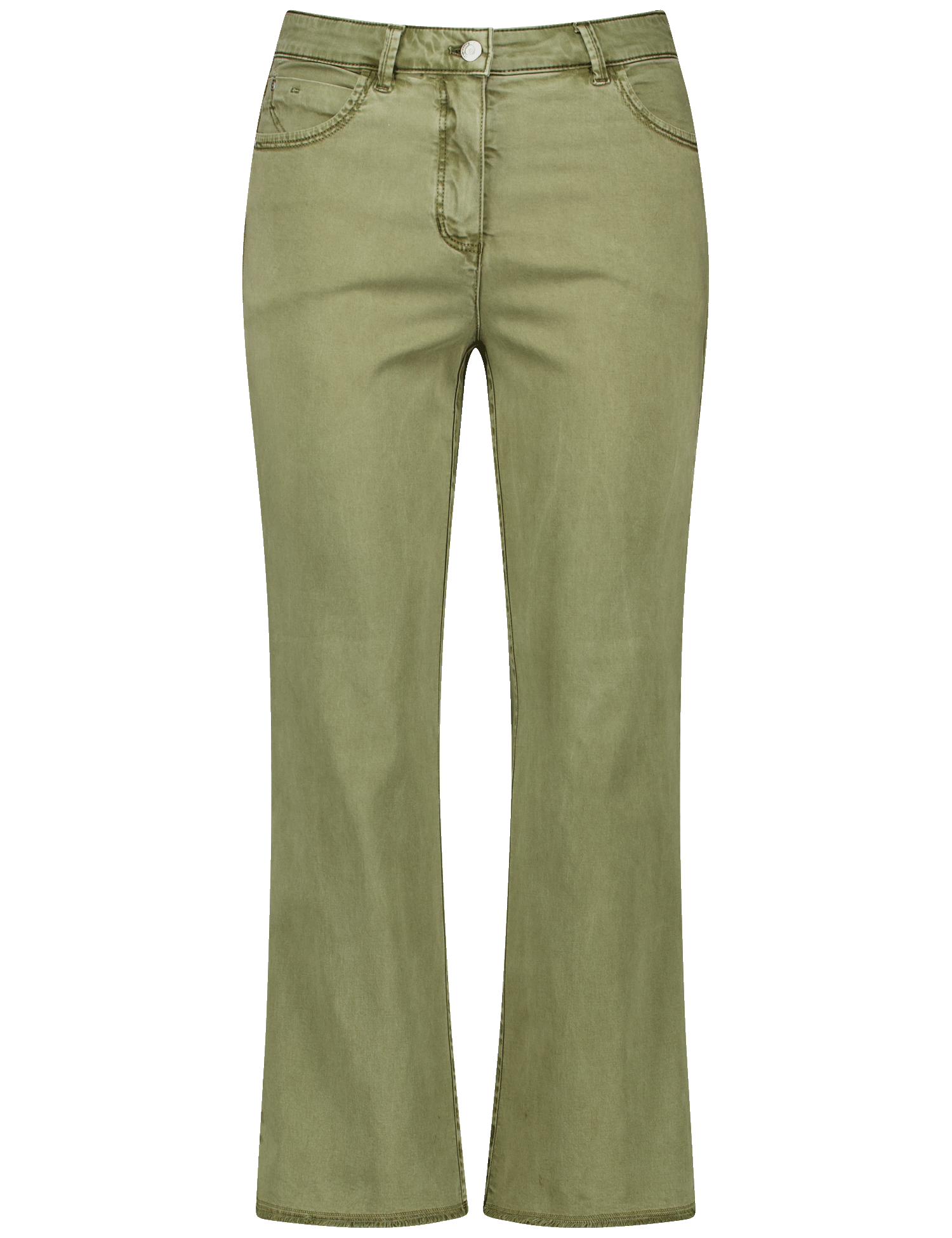 Der gerade, leicht ausgestellte Beinverlauf sorgt für eine schmeichelhafte Silhouette. Typische Five-Pocket-Details verleihen der Hose eine elegante Note. Der Bund mit Knopf und Reißverschluss bietet sicheren Halt und trägt sich angenehm. Die sorgfältig platzierten Gesäßtaschen formen eine vorteilhafte Rückansicht.