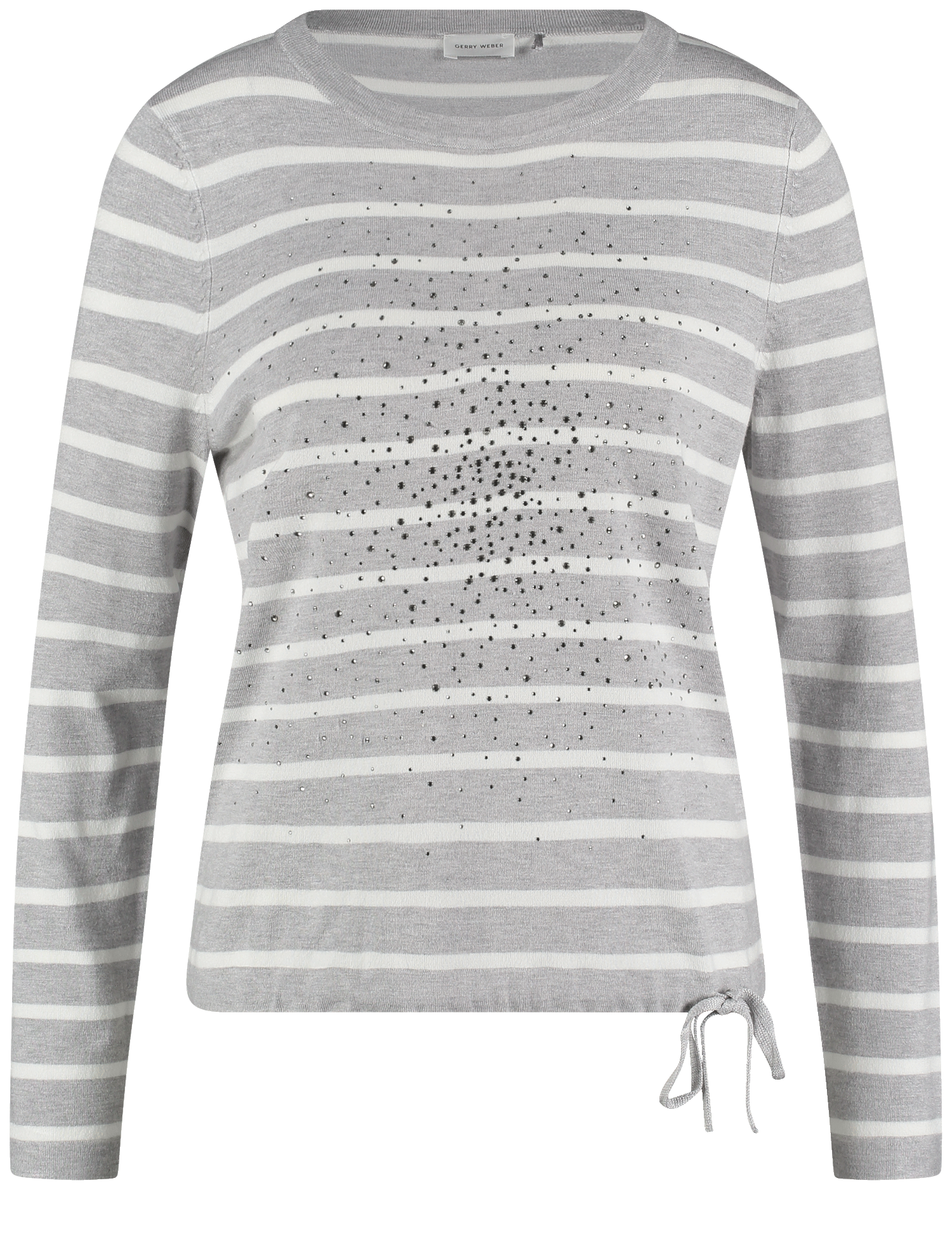 Damen Langarmshirt mit Streifen und Ziersteinen: