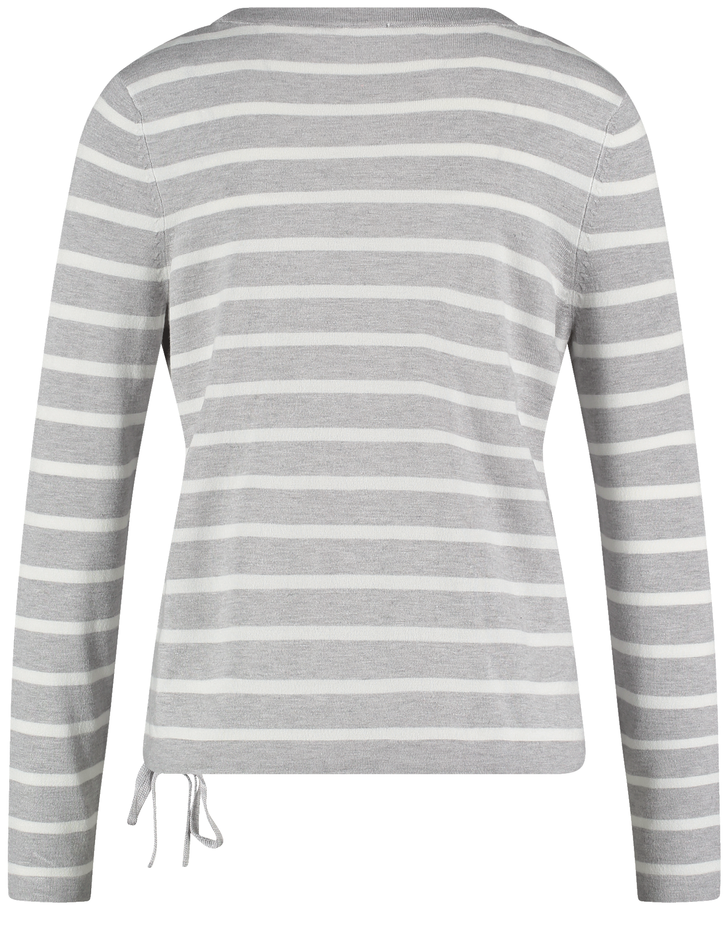 Das Shirt mit Rundhalsausschnitt und langen Ärmeln besticht durch seine harmonische Streifenoptik. Der leicht verkürzte Schnitt mit seitlichem Bindeband ermöglicht individuelle Styling-Optionen – ob lässig oder elegant kombiniert.