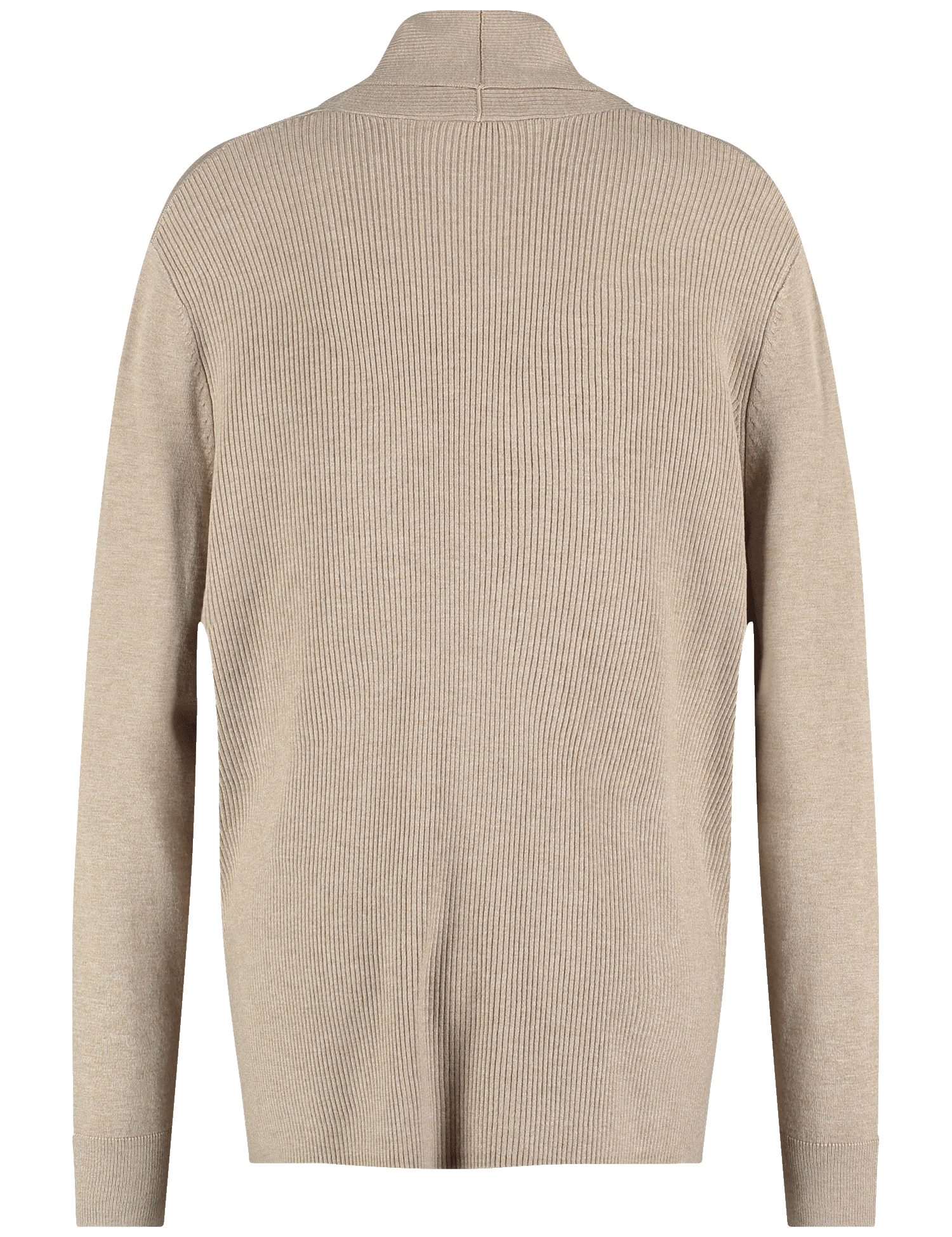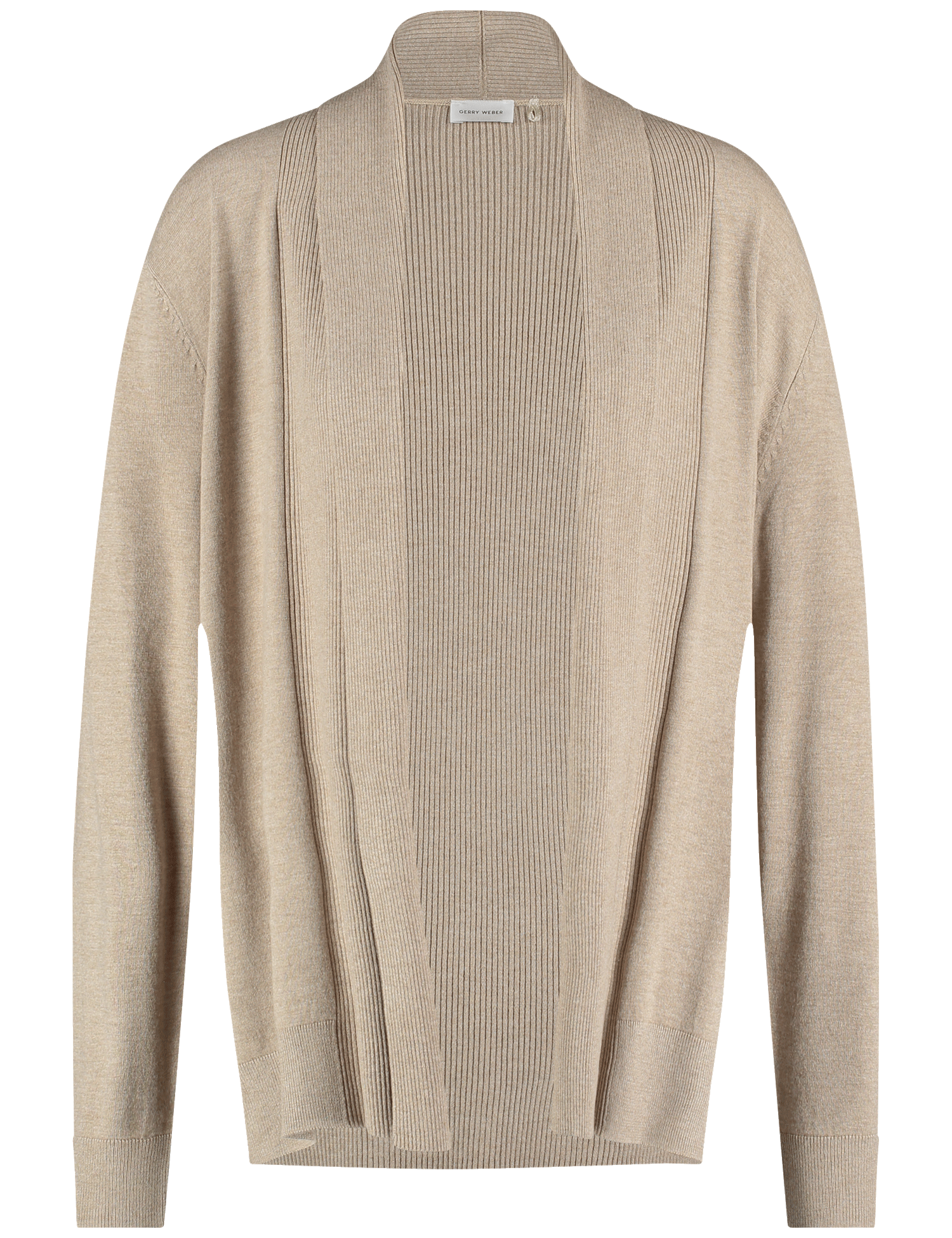Der Cardigan überzeugt durch seine gerade, offene Silhouette mit breiter Blende. Die feine Rippstruktur an Vorderseite und Saum verleiht dem Modell optische Tiefe und sorgt für eine elegante Linienführung. Die leicht überschnittenen Schultern schaffen eine moderne, legere Note, während die hochwertige Verarbeitung für einen fließenden Fall sorgt.